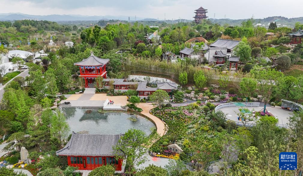 这是4月21日拍摄的成都世园会主会场郑州园。新华社记者 江宏景 摄