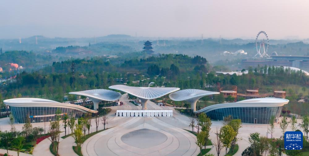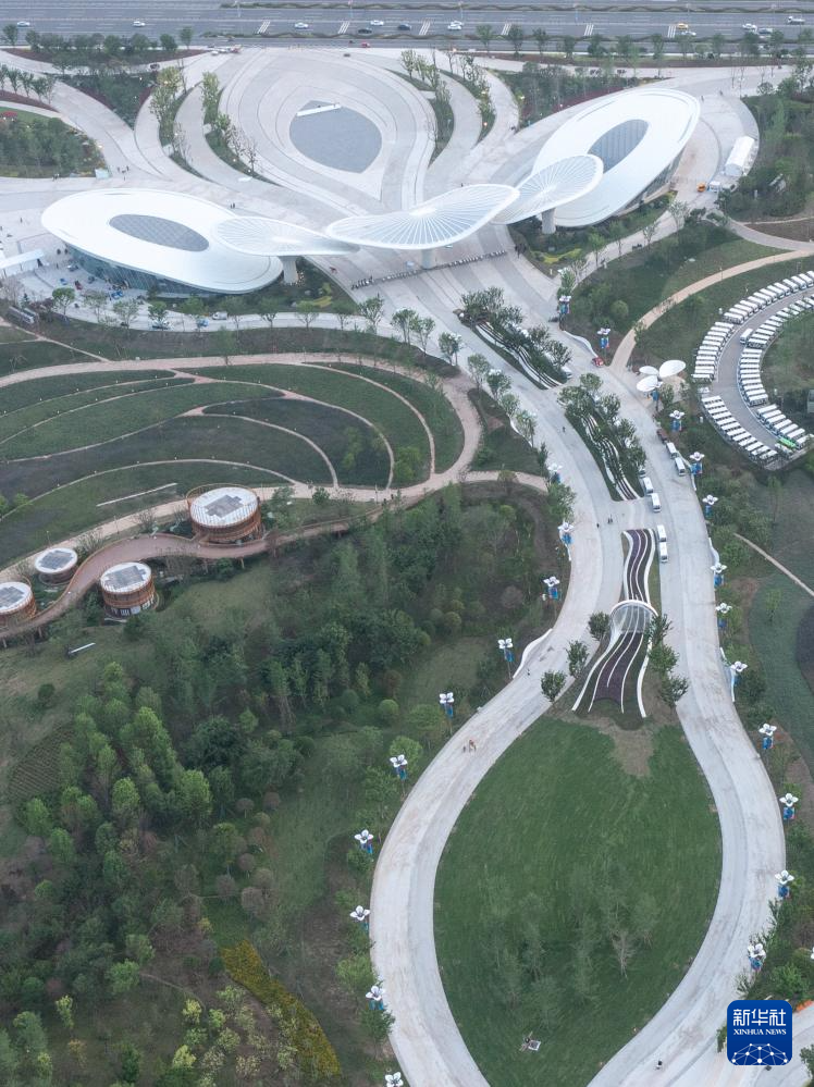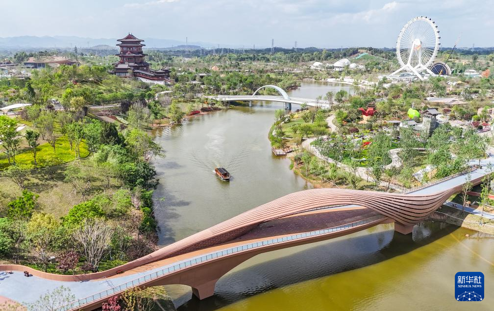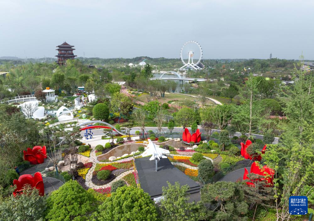 这是4月23日拍摄的成都世园会郫都分会场(无人机照片)。新华社记者 王曦 摄