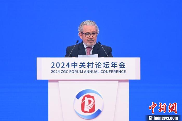 世界知识产权组织助理总干事马尔科·阿莱曼25日出席2024中关村论坛年会开幕式暨全体会议并致辞。 中新社记者 田雨昊 摄