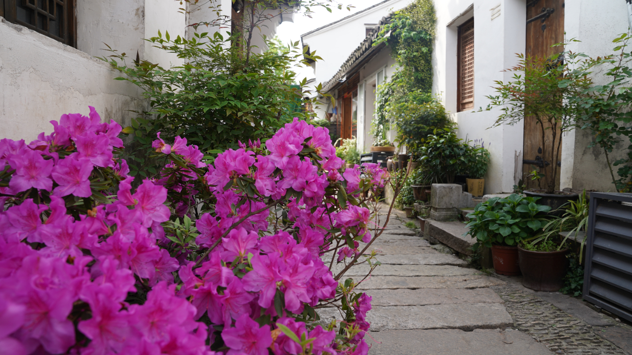 蔷薇花开、清风拂面,春日的早晨,走在位于江苏省无锡市的清名桥历史文化街区,一幅诗意的江南水乡画卷铺陈在眼前。4月22日,记者在街区里看到,一位居民搬出了小凳,坐在家门口摘菜,身边摆放着10多盆绿植。