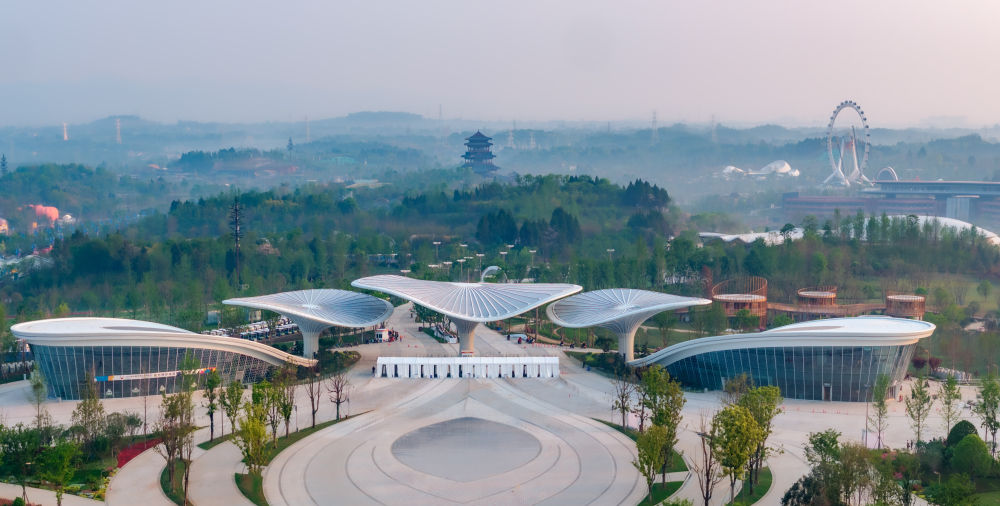 窗含千秋,门泊万里。从空中俯瞰,2024年成都世界园艺博览会主会场如同一朵盛放的芙蓉花,迎接世界各方宾朋。