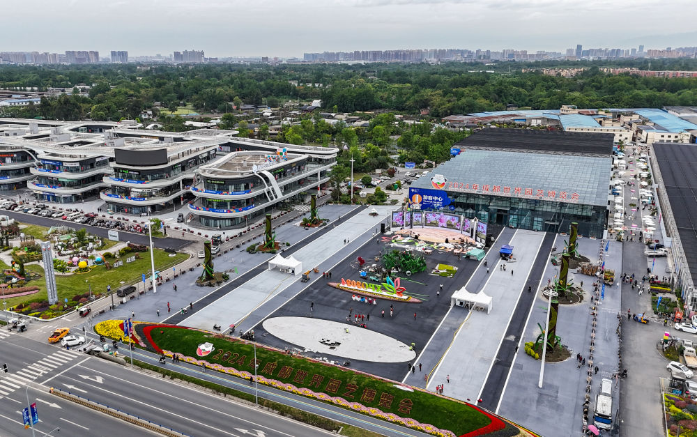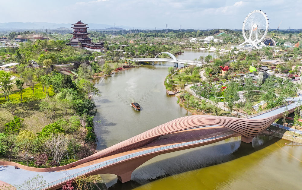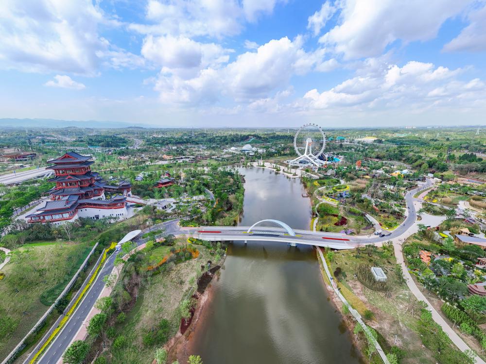 这是2024年4月23日拍摄的成都世园会郫都分会场(无人机照片)。新华社记者 王曦 摄