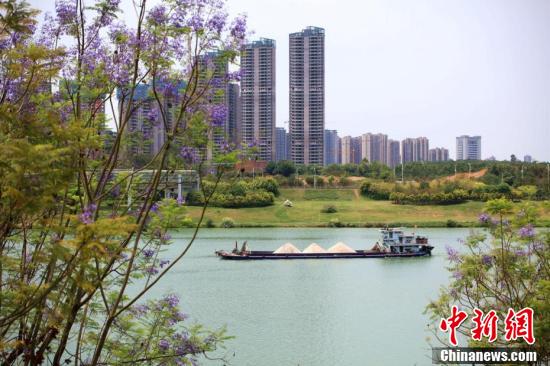 近日,广西南宁市蓝花楹盛开,蓝紫色的花朵将街道装点得如梦似幻,为城市增添了一道浪漫美景。