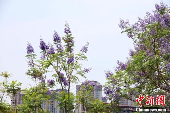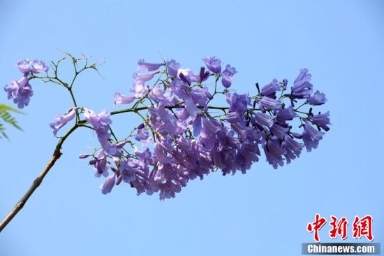 近日,广西南宁市蓝花楹盛开,蓝紫色的花朵在风中摇曳生姿。