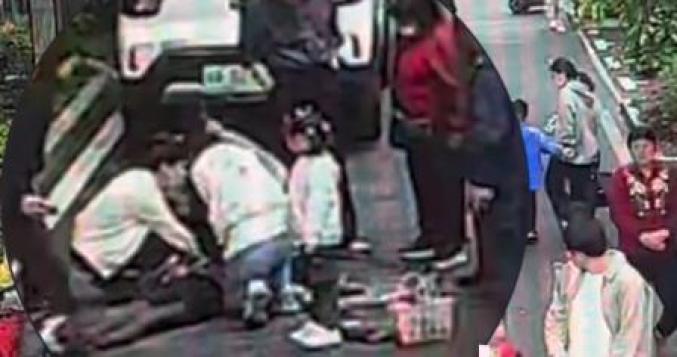 一位路过的白衣女子见有人倒地