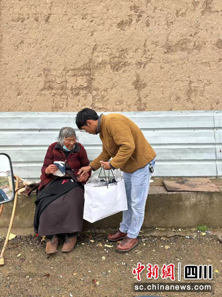扎西夺尔登为困难群众送去冬季御寒物资。阿坝州文明办供图