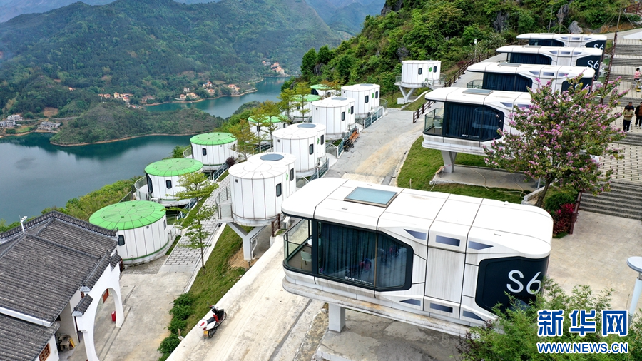 在岩滩旅游景区美女峰摘星营地,来自贵阳的李先生带着家人住在太空舱民宿。“我是做旅游的,这次来大化进行考察,准备设计一条小众旅游路线。”李先生说,“这里早晨可以赏云海,傍晚是欣赏日落的绝佳位置,晚上还有满天繁星,非常值得推荐。”