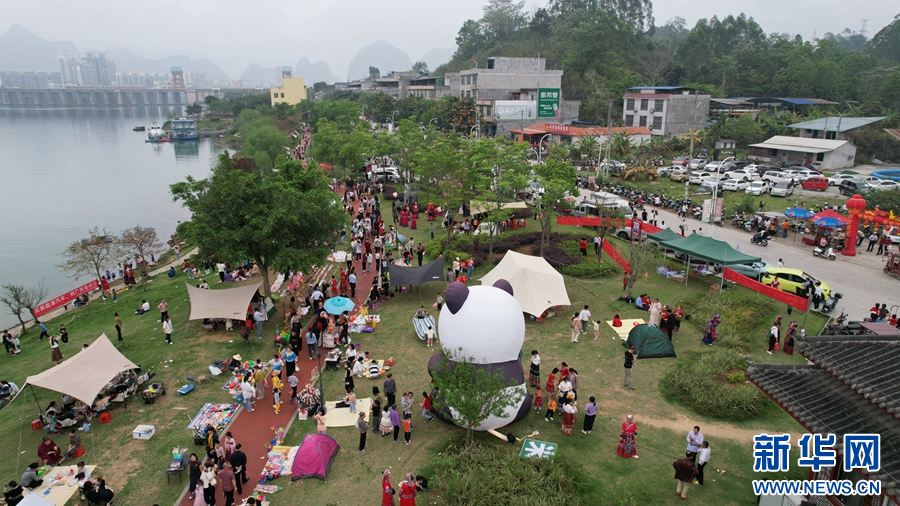 “广西三月三”期间,在大化生态水岸公园举办的“山水大化·花样露营”三月三露营节吸引了数千名游客前来游玩体验。