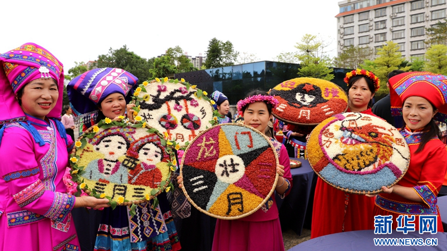 4月8日,大化举行“糯文化 看大化”美食展示活动,心灵手巧的瑶乡群众展示造型各异的五色糯米饭作品。黄晗 摄
