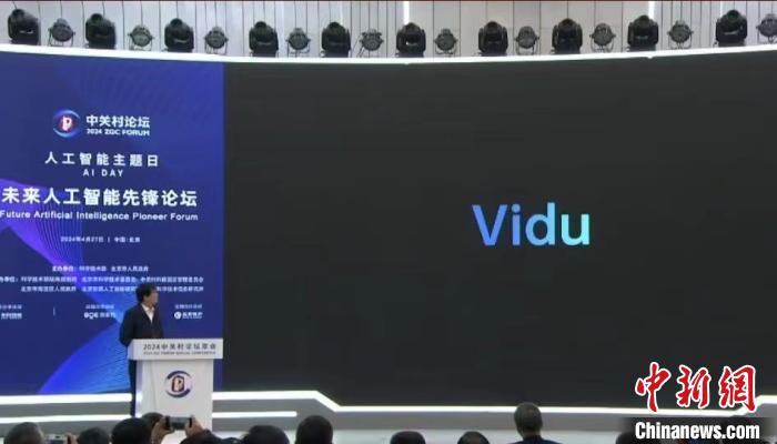 4月27日,在2024中关村论坛年会未来人工智能先锋论坛上,清华大学联合生数科技正式发布Vidu。 中新社记者 陈溯 摄