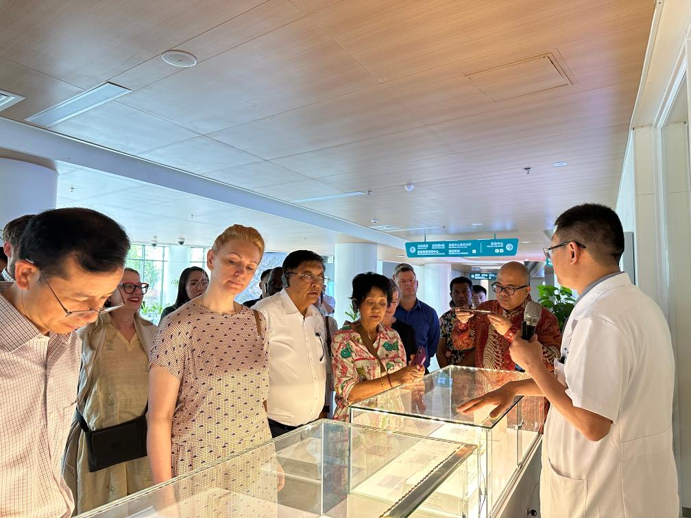 图为驻华使节在博鳌乐城国际医疗旅游先行区里的一家医院内考察。新华社记者 袁睿 摄