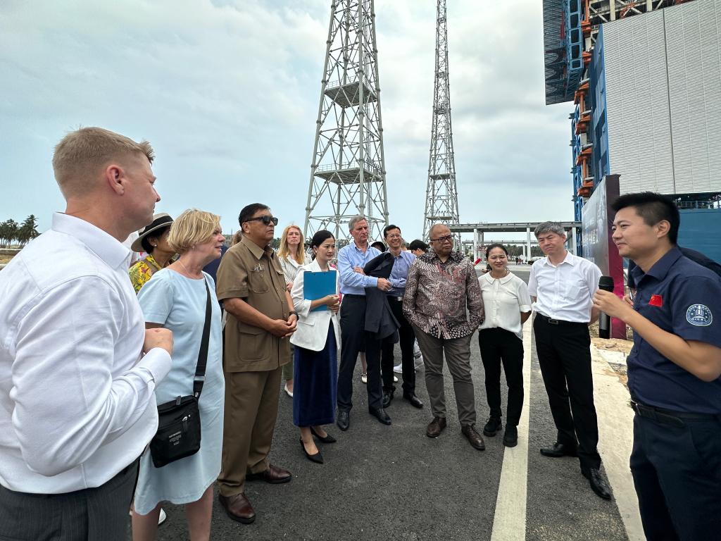 图为驻华使节在海南国际商业航天发射中心听讲解。新华社记者 袁睿 摄