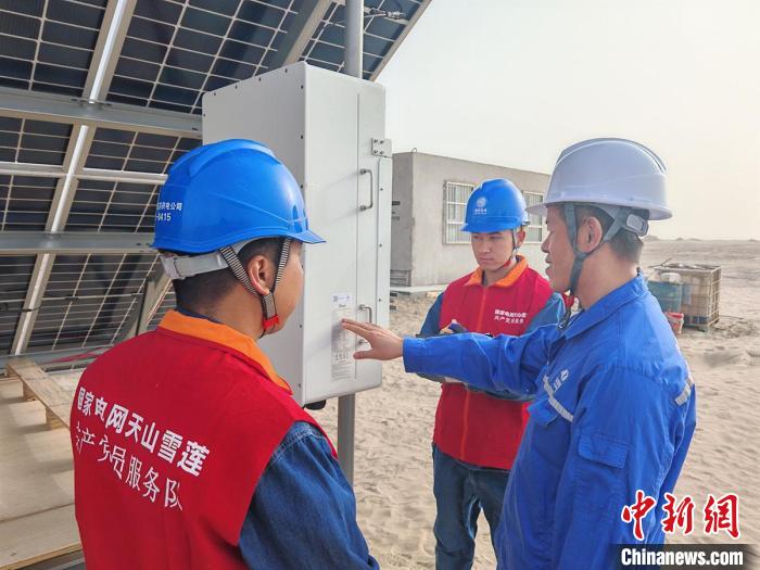 沙漠立铁塔,银线穿黄沙。为积极做好中电建25万千瓦光伏项目并网投运工作,国网阿克苏供电公司主动靠前服务,组织人员定期上门了解项目建设用电需求,紧盯工程建设进展,加快推进并网线路建设,将投资建设一条220千伏线路使光伏基地与海楼220千伏变电站相连进行消纳。