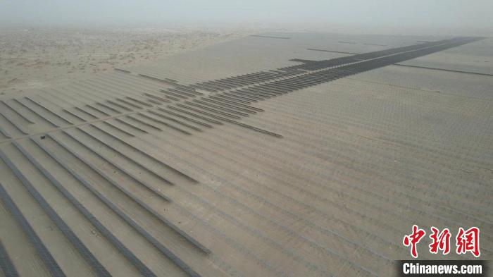 截至3月底,中电建25万千瓦光伏项目已完成光伏板基桩的建设和第一期5万余块光伏板的安装。今年6月,这里将建成一个占地约7000亩、年发电量4.14亿千瓦时的光伏基地,并配套建设一座220千伏升压站,通过“光伏+治沙”筑牢生态防线。