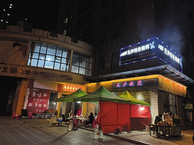 罗娟每天早上7点起床,送女儿上学。然后去菜市场买晚上的食材。其间罗瑞和小伙伴们会备好菜。下午5点多,他们在店里吃晚饭,6点出摊。“我现在只需要坐在一张桌上帮忙烤豆腐,基本上没什么大事。晚上10点多,我就回家陪女儿睡觉,他们一直工作到凌晨。”