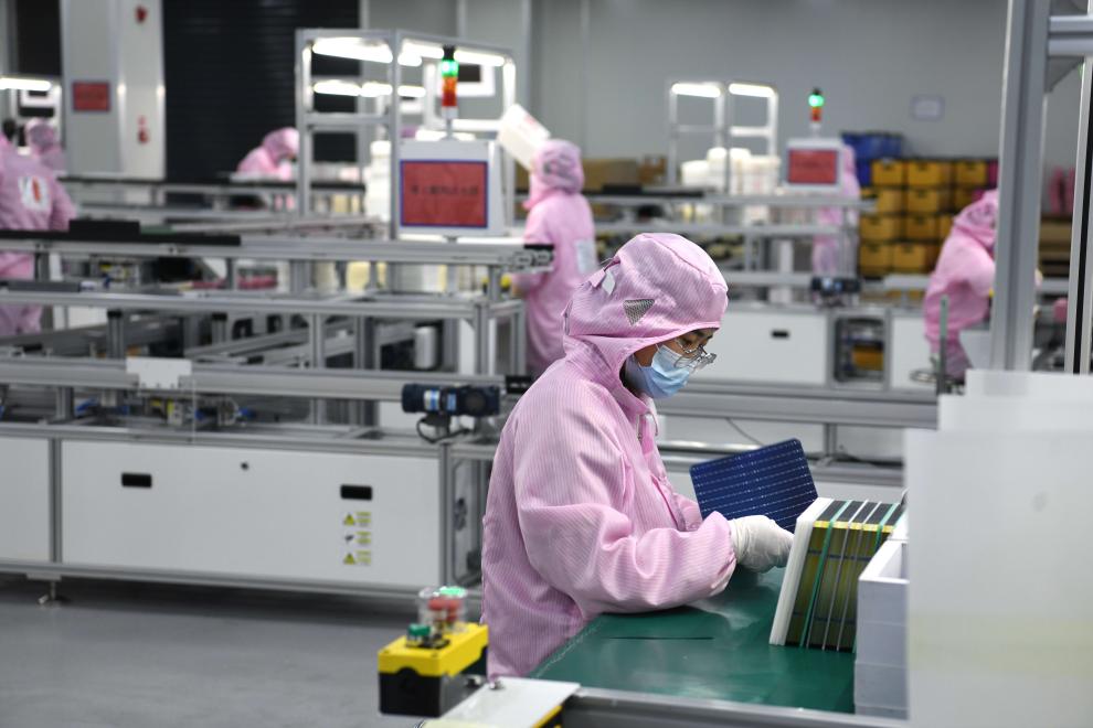 2023年3月1日,工作人员在“顶山—汊河”跨界一体化发展示范区的一家太阳能电池片企业生产线上忙碌。新华社记者 刘军喜 摄
