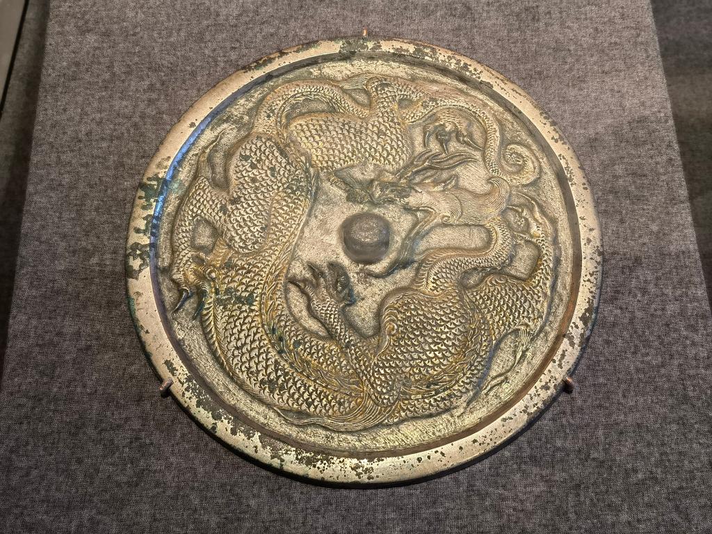特展展出的鎏金盘龙镜。新华社记者 孙少龙 摄