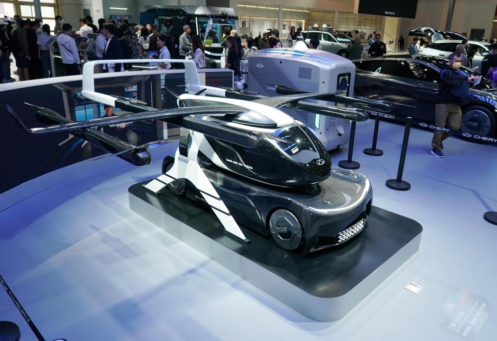 这是2024年4月30日在北京车展上拍摄的一款复合翼三体式飞行汽车。新华社记者 张晨霖 摄