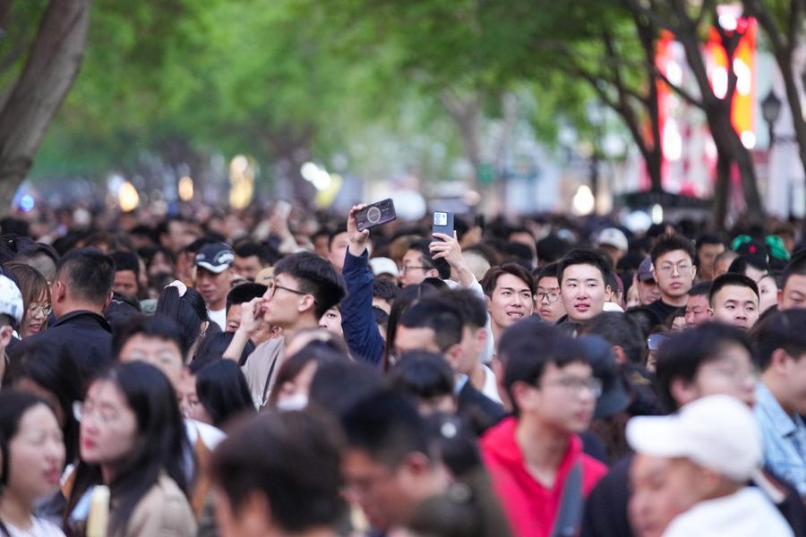 5月1日,哈尔滨中央大街上人头攒动。“五一”假期,文旅市场火热。新华社记者 王建威 摄