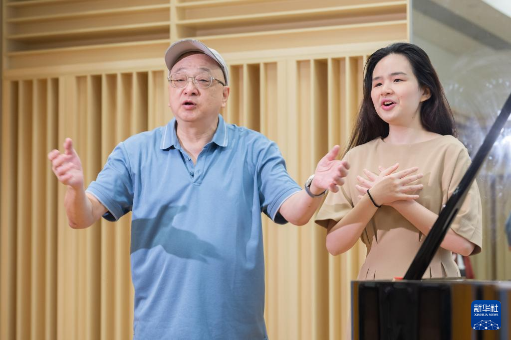 4月22日,萧辉德(左)帮助萧凯恩排练。新华社记者 朱炜 摄