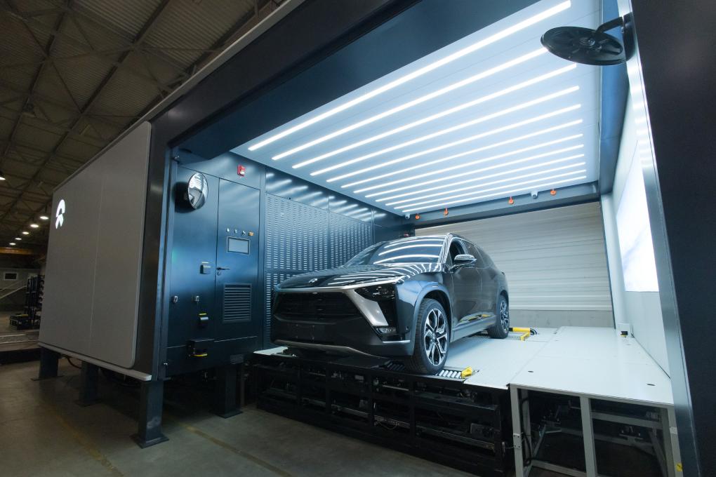 2022年9月16日,在匈牙利比奥托尔巴吉,一辆蔚来汽车停放在换电站中。新华社发(弗尔季·奥蒂洛 摄)