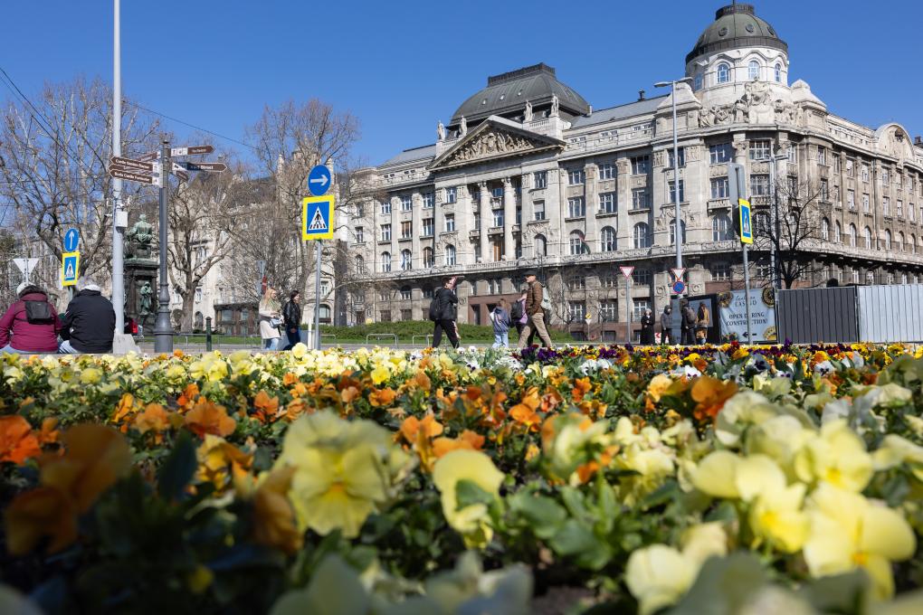 2024年3月17日,在布达佩斯,匈牙利内务部大楼前鲜花盛开。
