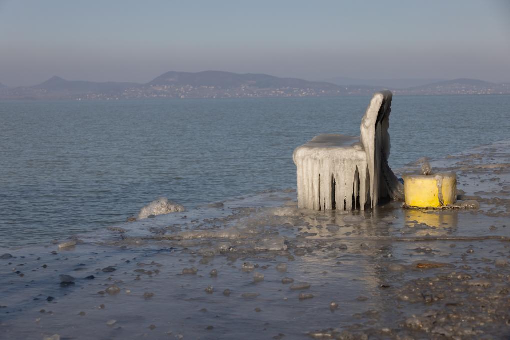 2024年1月10日在巴拉顿费尼韦斯拍摄的巴拉顿湖岸的冰柱。