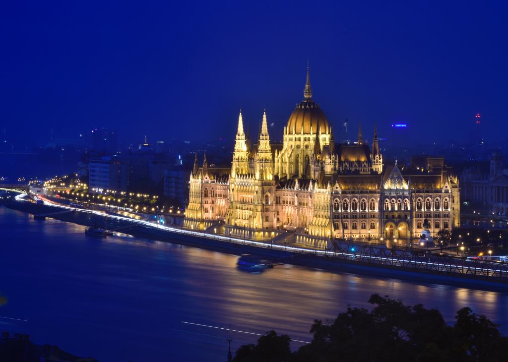 2016年9月17日在布达佩斯拍摄的匈牙利国会大厦夜景。