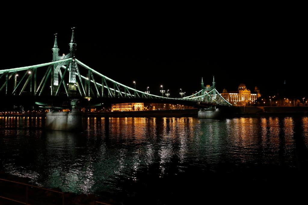 2017年4月24日拍摄的布达佩斯自由桥夜景。