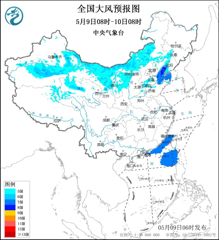 需要注意的是,今明两天,北方部分地区风力加大,中央气象台今晨继续发布大风蓝色预警。预计辽宁中北部、吉林中部、内蒙古大部、新疆东部和南疆盆地、青海西部、甘肃西部、宁夏大部、陕西北部、河北南部等地的部分地区有5~6级、阵风7~9级的大风。