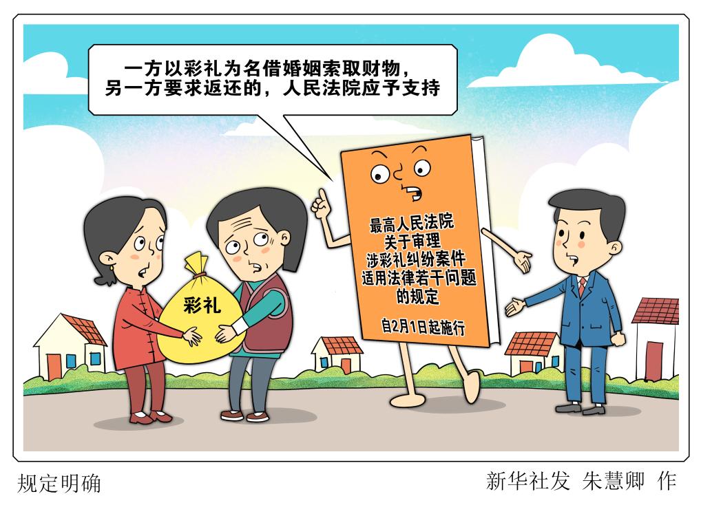 今年2月1日,最高人民法院关于审理涉彩礼纠纷案件适用法律若干问题的规定正式实施,为遏制“天价彩礼”、助力移风易俗提供新的法治力量。