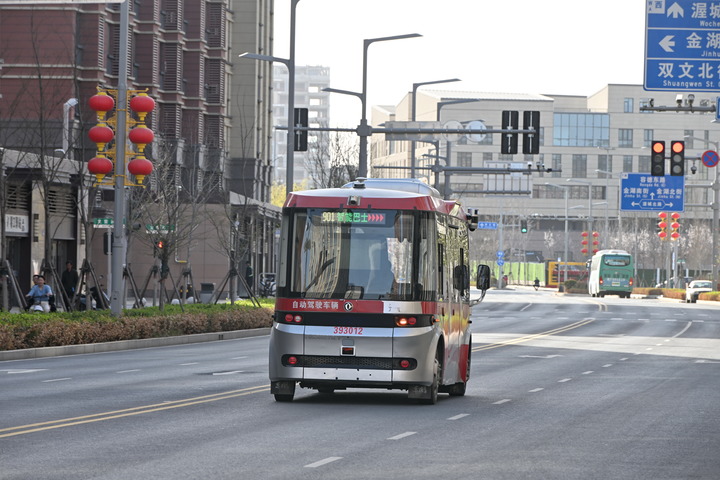 3月29日,智能网联巴士在雄安新区容东片区道路上行驶。新华社记者牟宇 摄