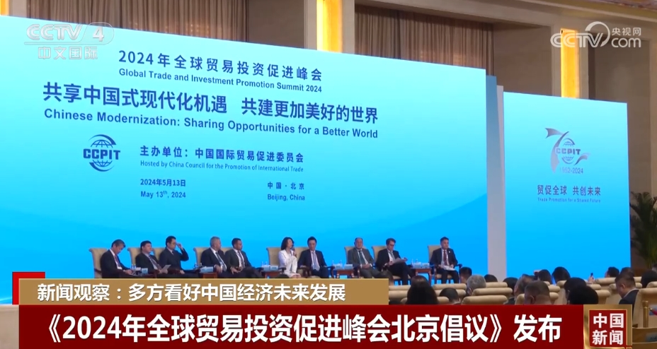 央视网消息:2024年全球贸易投资促进峰会5月13日在北京举行,来自40个国家和地区的170个外方机构代表参会,国际组织和工商界的与会嘉宾均看好中国经济未来发展。会上发布的《2024年全球贸易投资促进峰会北京倡议》呼吁,各界要通过维护产业链供应链稳定畅通,加强国际产业分工协作,推动产业链供应链优化升级,搭建务实经贸合作平台等举措,在共同推进复苏和发展中发挥更大作用。