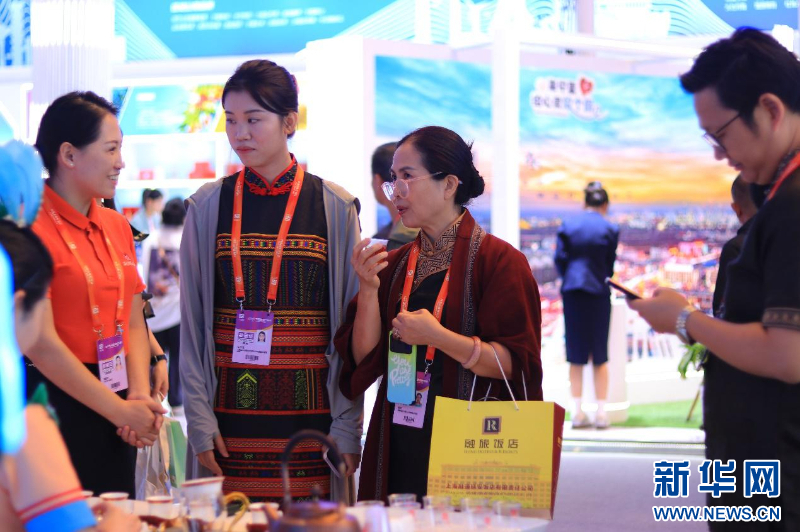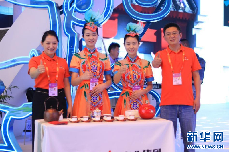 5月10日,中国品牌博览会现场,陈孟秋(左)和同事们在推介利川红茶。