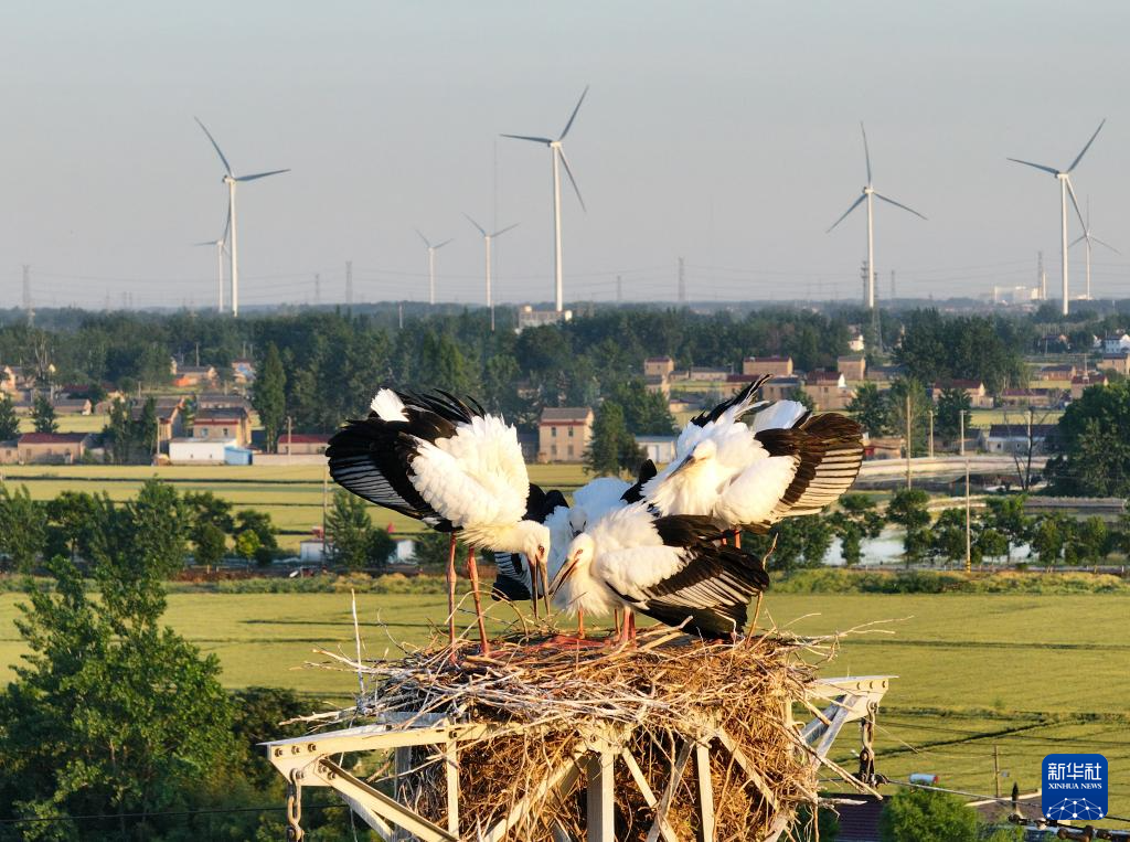 近年来,江苏省高邮市周山镇生态环境持续向好,引来“鸟中国宝”东方白鹳栖息、繁衍。