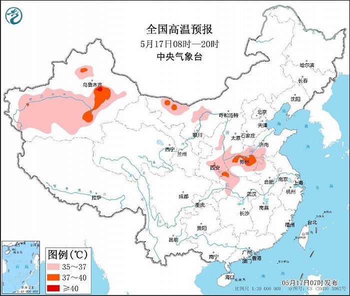 央视网消息:中央气象台网站5月17日消息,预计未来三天,华北中南部、黄淮及陕西关中等地将有一次高温天气过程,期间上述地区晴朗少云,气温攀升较快,日最高气温将超过35℃,局地可达37~38℃。其中今天,河南西部和北部、山东西南部、安徽北部、山西南部、陕西东南部、湖北西部及内蒙古西部、新疆南部等地气温有35℃,局地超过37℃。白天紫外线较强,气温较高,公众户外活动请注意防暑防晒。