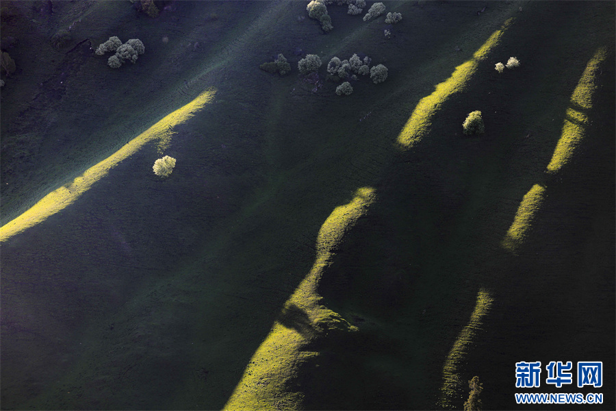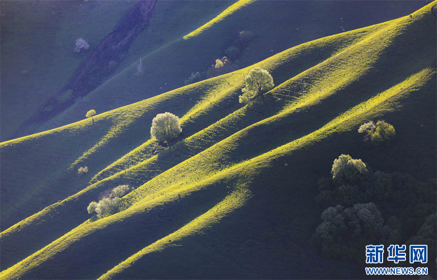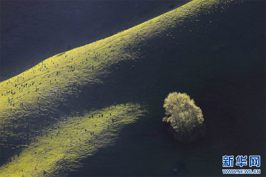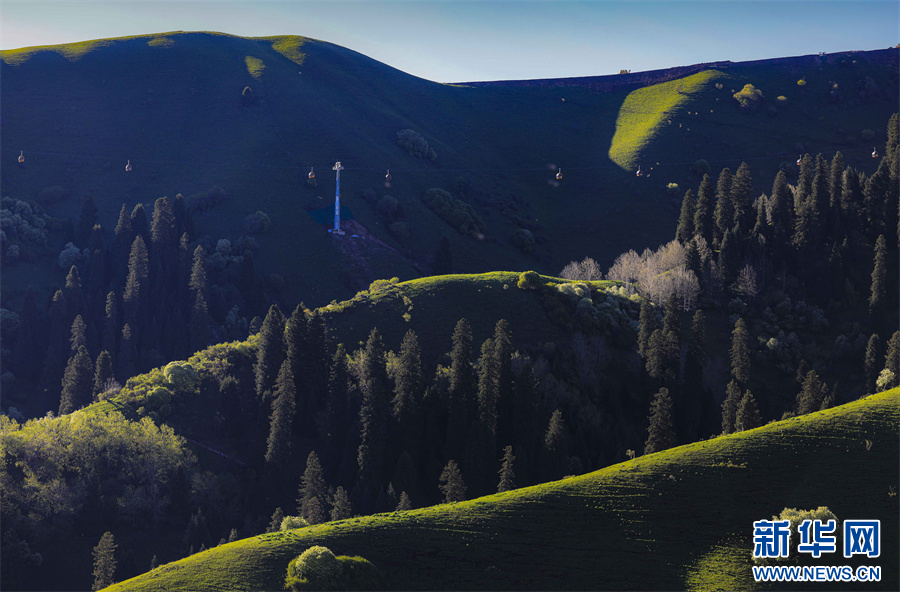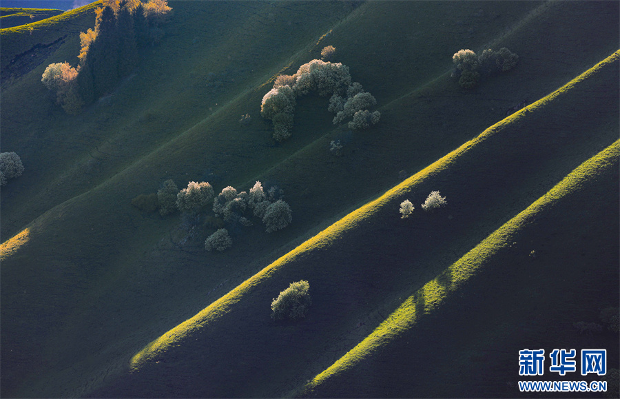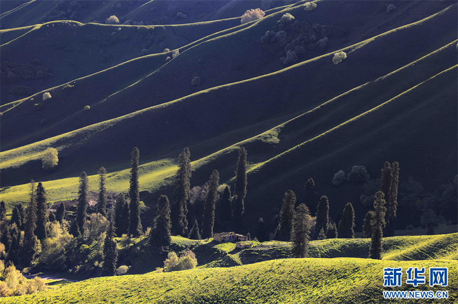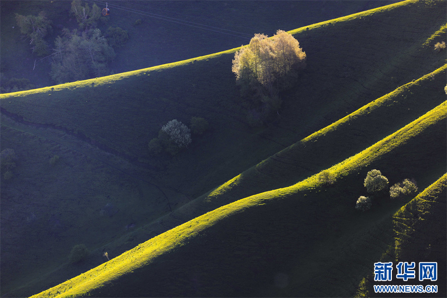 5月的新疆那拉提草原绿草如茵,繁花盛放,生机勃勃。清晨的光线照射在那拉提起伏的山体脊梁上,汇聚成神奇的光与影的世界,阳光勾画出山体草甸轮廓,线条柔美,层次分明。山梁与山脊、草木披上金色长袍,为绵延起伏的草甸增戴上神秘面纱,一幅美丽的画卷展现在眼前,令人陶醉。