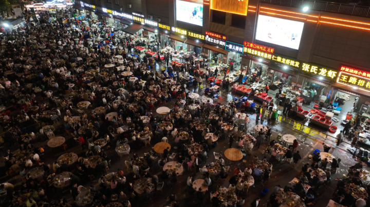 在江苏盱眙的大桐农贸市场,聚集着数十家以经营小龙虾为主的餐饮店、大排档。暮色降临,数千平方米的露天广场上,游客座无虚席,空气中弥漫着扑鼻香气。