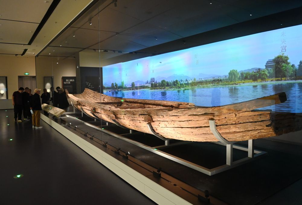 2024年5月6日,观众在陕西历史博物馆秦汉馆参观文物汉代古船“丝路一号”。新华社记者 李一博 摄