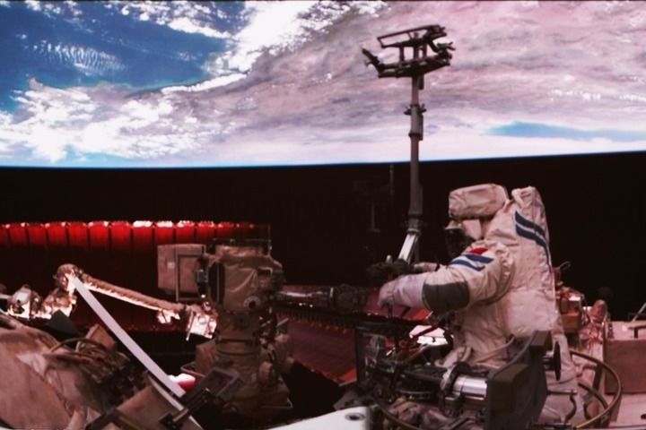 2024年7月3日在北京航天飞行控制中心拍摄的神舟十八号航天员李聪在空间站组合体舱外作业的画面。新华社记者 郭中正 摄