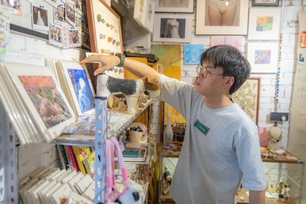 在老街一处支路的梯坎上,有一家名为“YEE艺术杂货”的小店,琳琅满目的艺术品,引得不少顾客一边观赏,一边拍照。“我的不少艺术家朋友,都在我店里寄卖作品。”店主易杰说,“门店从开业到现在,一直是处于盈利状态,人流量大的时候,单日进店人数超过1000人次。”