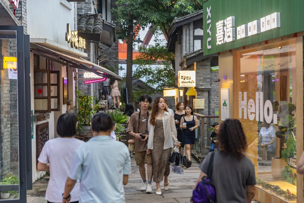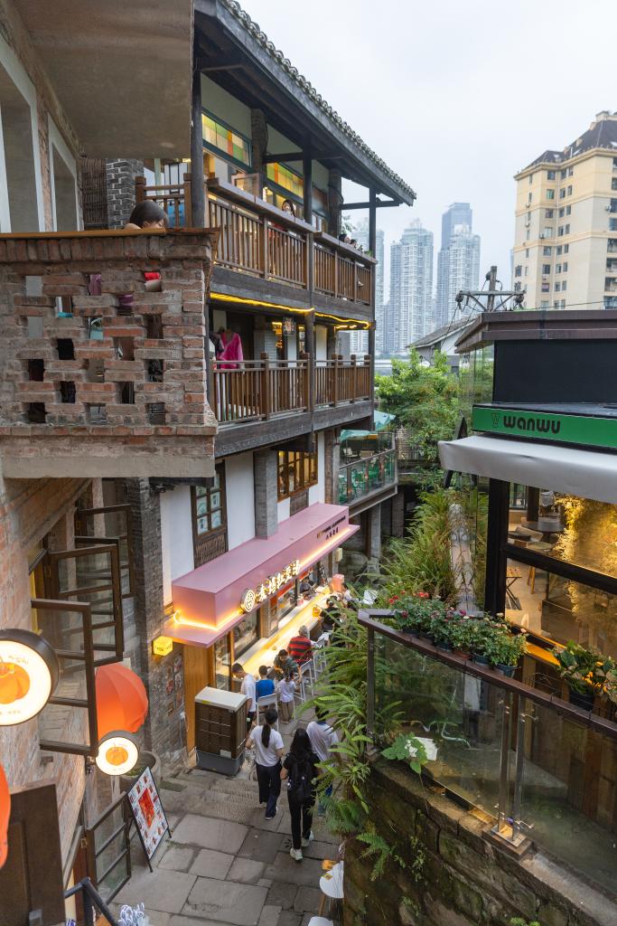 据南岸区商务委副主任刘江勇介绍,改造后的下浩里自2022年11月开街以来,入住商家已达110家,70余栋建筑中,招商率超过9成,整体出租率达90%。