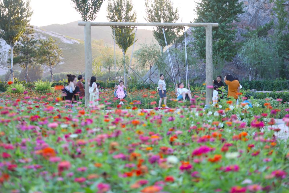 市民在由采石场修复治理和绿化建设而成的辽宁北票市山体公园休闲游玩(2024年8月8日摄)。新华社记者 杨青 摄
