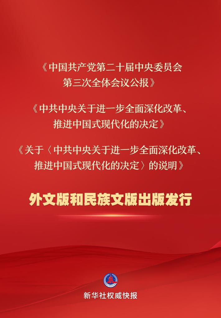 来源标题:新华社权威快报|党的二十届三中全会主要文件外文版和民族文版出版发行