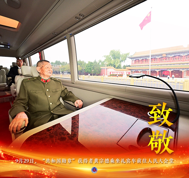 9月29日,“共和国勋章”获得者黄宗德乘坐礼宾车前往人民大会堂。