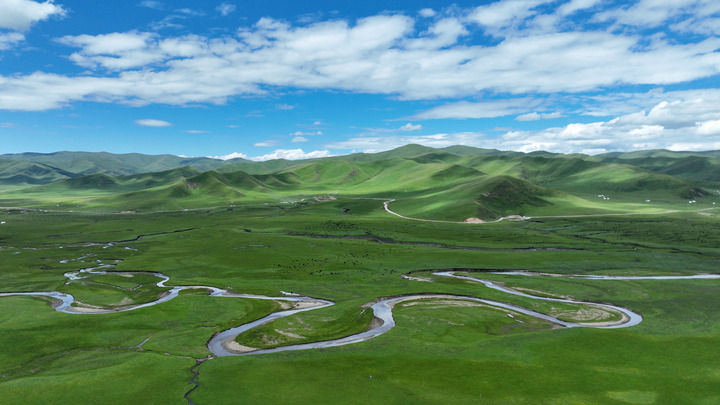 玛曲,藏语意为黄河,是全国唯一以“黄河”命名的县,也被称为“黄河首曲”。黄河433公里的大转弯让数百条各级支流如血管般遍布草原,境内10190平方公里的黄河流域草原青青,河水清清。这里水源年均补给量占黄河源区总径流量的58.7%,也被称为“黄河之肾”。