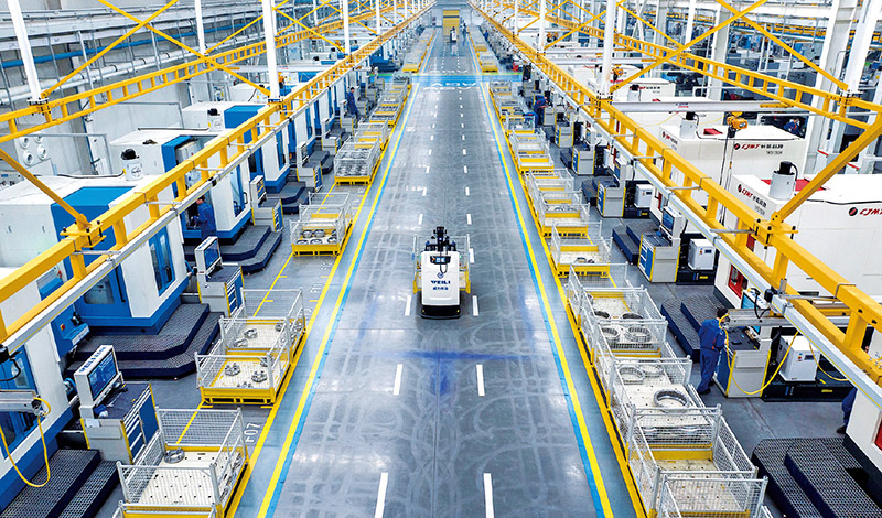 发展新质生产力不是忽视、放弃传统产业,要运用先进技术赋能传统产业转型升级。图为2024年8月28日,宁夏银川经济技术开发区一家公司数字化车间内,自动导向搬运车正在作业。 新华社记者 杨植森/摄