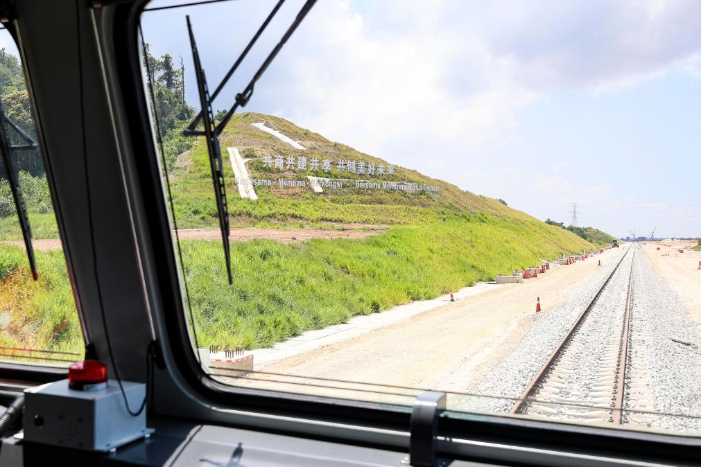2024年5月6日,在马来西亚彭亨州马东铁项目沿途的山坡上,两行中文和马来文大字“共商共建共享,共创美好未来”映入眼帘。新华社记者程一恒摄