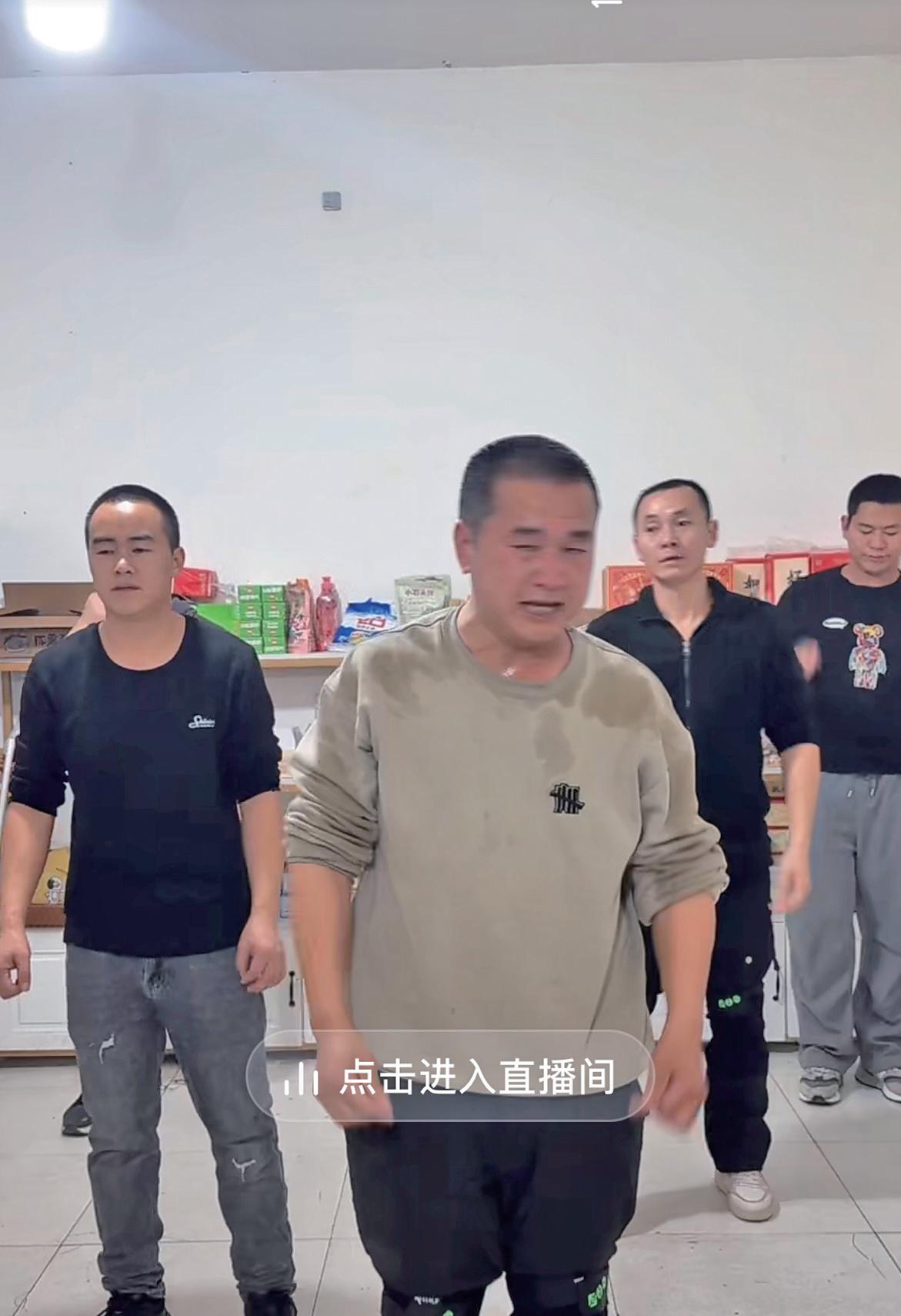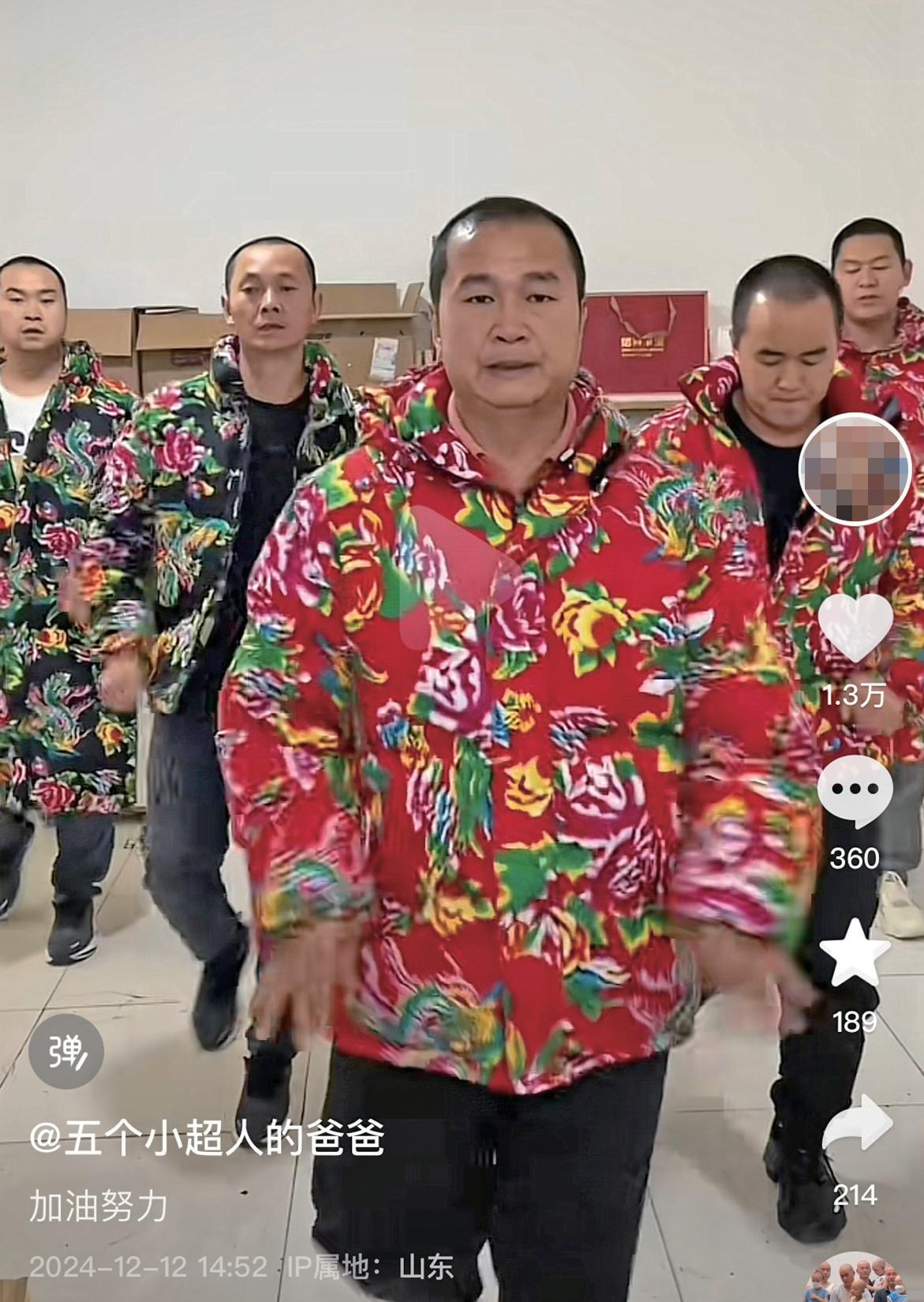 五个爸爸曾穿着棉袄在直播间跳舞。从左到右依次是:李章兵、陈兴斌、解道成、刘启勇、卯升阅。 短视频平台截图