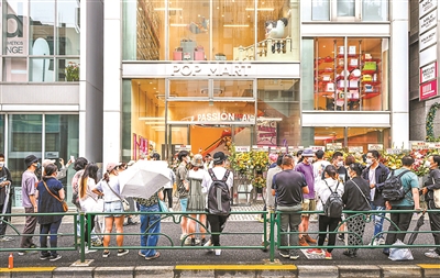 日本泡泡玛特潮玩店外等待进入的顾客